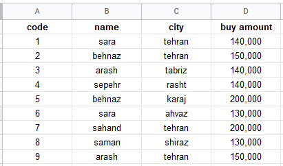 به عنوان مثال، جدول زیر را در نظر میگیریم؛