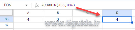 تابع مشابه دیگری با نام COMBINA در گوگل شیت وجود دارد که با استفاده از آن میتوان تعداد ترکیبهای باتکرار را محاسبه کرد.