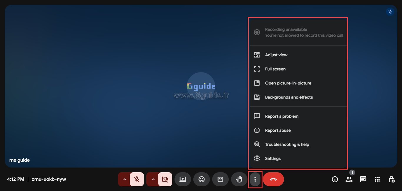 - Report a problem: گزارش یک مشکل یا ارسال یک پیشنهاد برای بهتر شدن گوگل میت