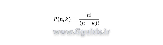 تعداد جایگشتهای ممکن k شیء از n شیء از طریق فرمول زیر محاسبه میشود؛